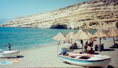 A Matala, vous avez de temps de déguster les spécialités grecques et puis de jouir du soleil à la plage!