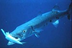 Argenté rayé de noir, ce prédateur au corps effilé a une denture