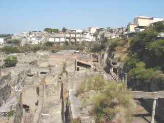 79, à la suite de l'éruption du Vésuve, un torrent de boue la submergea entièrement. Une fois solidité, il prit l'aspect d'une muraille de tuf de 12 à 18 mètres de haut. Les fouilles se sont donc déroulées dans des conditions difficiles mais, contrairement à ce qui s'était produit à Pompéi, ensevelie sous une pluie de cendre et de pierres, ici tout ce qui était périssable comme le bois, les étoffes et les denrées alimentaires, est resté dans un bon état de conservation. Herculanum nous fournit des témoignages irremplaçables à ce sujet.