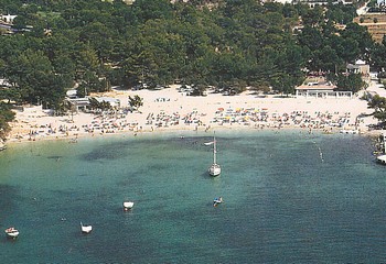Plage type pour des vacanciers qui résident à l'endroit même, et qui peuvent trouver sur place tout ce qu'ils souhaitent. La plage se situe dans une baie très fermée et protégée