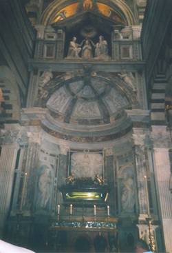 La coupole est décorée d'une Assomption de la Vierge, oeuvre de Riminaldi, qui mourut de la peste en 1631 sans voir son travail terminé.