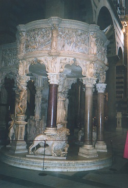La civilisation romane nationale triomphe et s'identifie dans la cathédrale de Pise. Les vastes arcs arrondis romans, les légères et harmonieuses galeries d'inspiration lombarde se fondent en une insurpassable harmonie de lignes, de marbres et de couleurs.