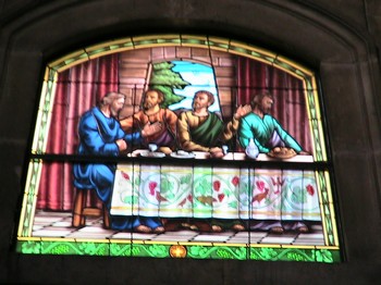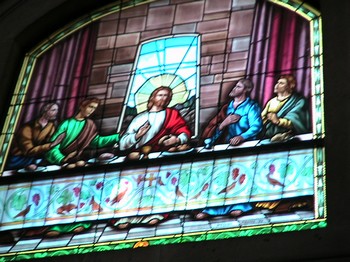 Les piliers qui séparent la nef centrale des nefs latérales sont des vestiges des murs longitudinaux du temple.