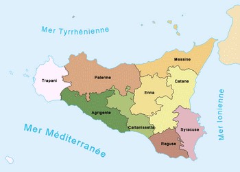 La Sicile est marquée par le chiffre 3: 3 pointes, d'où sa forme de triangle (Trinacrie) et 3 km de détroit séparant le sud de la botte italienne et l'île.