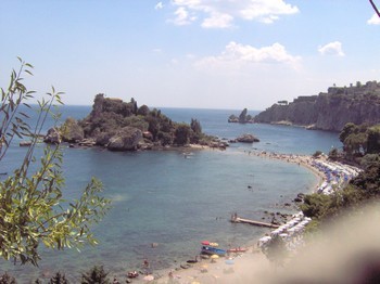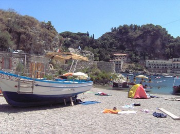 La zone balnéaire Taormina Mare s'étend de part et d'autre du cap S. Andrea aux nombreuses grottes (il est intéressant de le