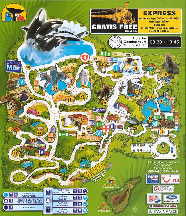 'Loro Parque' se trouve à Puerto de la Cruz. Il s'agit d'un des parcs animaliers les plus impressionnants d'Europe. Il comprend tout ce que notre planète peut offrir en termes d'environnement naturel: des forêts pleines d'animaux sauvages, des eaux abritant une énorme diversité de poissons et bien sûr, de l'air, lieu de prédilection d'une multitude étonnante d'espèces d'oiseaux.